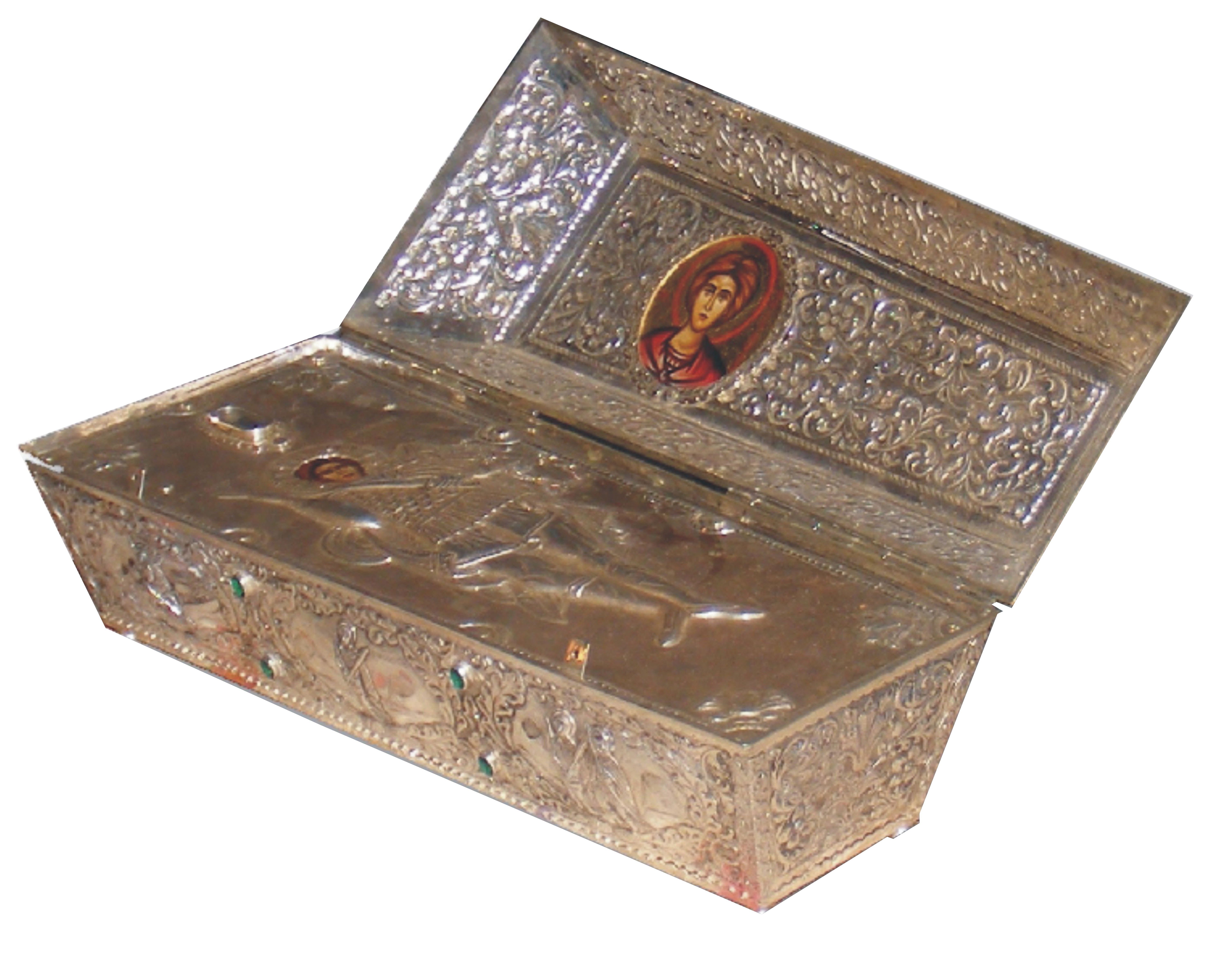 In decursul timpului Sfintele Moaste au fost asezate in diferite racle de argint, de lemn, de metal, iar in anul 2006 s-a confectionat o noua racla din argint masiv.
