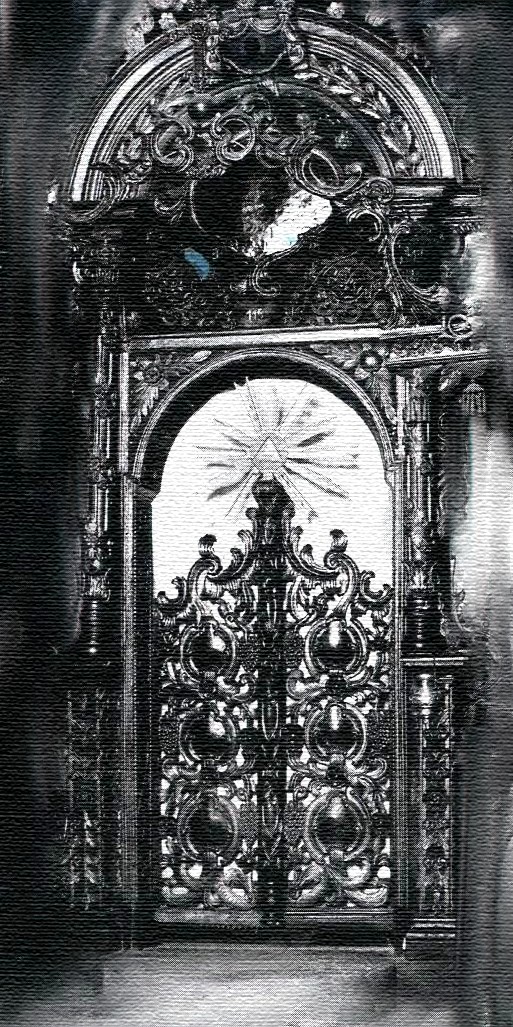 Pisania bisericii aflată deasupra intrării conține următorul text în slavonă: